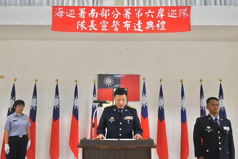 海巡署南部分署分署長宋子陽日前至屏東海巡加祿營區主持第六岸巡隊新任隊長布達典禮,並由第八巡防區主任李泉龍、屏東查緝隊隊長許育勝及第十四海巡隊副隊長林恒弘等出席觀禮,分署長勉勵全體同仁,在新任隊長領導下繼往開來,群策群力、精益求精、再創新猷,捍衛國境之南。新任隊長巴全海上校「陸軍官校專科班88年班」畢業,最高軍事學歷為「國防大學戰爭學院107年班」,曾任第六三岸巡大隊大隊長、第六海岸巡防總隊副總隊長、南沙指揮部參謀主任及東沙副指揮官等重要職務,並且熟稔屏東地區沿線海岸地形及海巡任務,具海域執法及國防安全實務經驗,學(經)歷豐富,調任隊長一職必能維護屏東地區海域、海岸治安,確保國家安全。(圖文:記者范家豪)