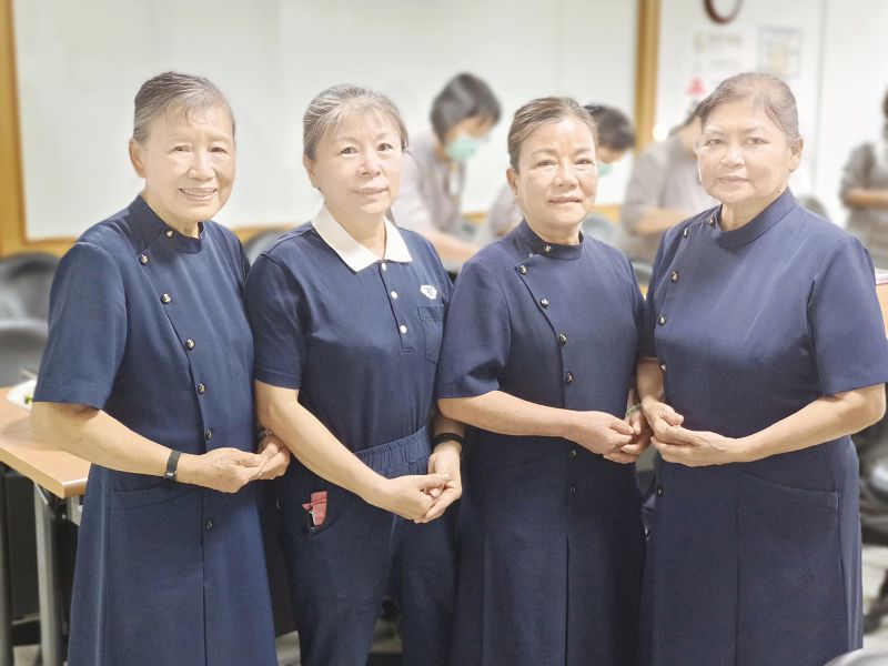 早期從事慈濟環保志工,前後在慈濟擔任志工37餘年,今年74歲的「懿德媽媽」卓秋梅說,「早上五點多就去市場採買」每次為了準備家聚午餐,一大早到市場採買在地最新鮮、最好的食材,烹煮出一道道愛的蔬食,主要慰勞醫院同仁;另一位「懿德媽媽」蔡玉真說,每個月最期待做飯做菜給醫院同仁享用,「愛、惜福」就是把菜都吃光光,除了盤要見底,水果一樣也要帶走,不計成本付出「做得很開心」;邱秀宴說,我們四人為團隊,大家分工準備中餐,有準備蔬食料理、澱粉主食、高價值營養蛋白質、水果,這次團隊中的謝秀敏特別「厚工」製作,外面吃不到的獨家傳統素碗粿,不需添加醬料,碗粿入口即化,好吃極了。