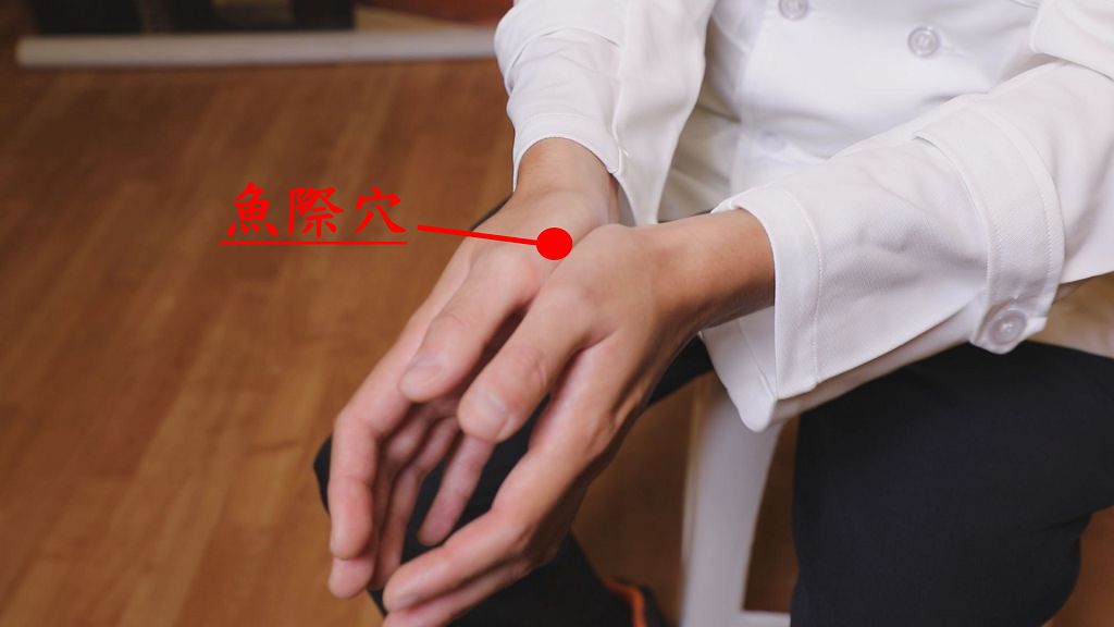 最後是黃繻誼醫師分享兩個適合在秋季按壓的穴位。首先是「迎香穴」,迎香穴屬於大腸經的穴位,對於鼻子過敏或鼻塞的人有通鼻竅的效果,按壓方式可以用將左右兩手比成劍指,搓揉我們的鼻翼,這樣可以按壓到鼻翼的穴位,這對於長期過敏,在溫差變化時容易打噴嚏的人會有幫助。還有一個穴位就是「魚際穴」,魚際穴屬於肺經的穴位,在按摩的方式上我們可以將兩掌相對,將兩手魚際貼揉,這個穴位可用於清除肺熱、止咳喘,同時也可以幫助改善喉嚨的乾癢疼痛。