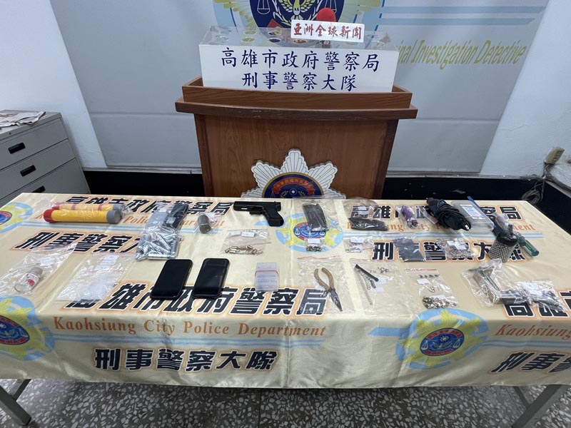 高雄市林姓男子涉嫌藏匿槍械遭人檢舉,經刑大偵2隊5分隊官警循線調查一段時日,查出他不僅改造槍械販售牟利,又涉及販賣毒品,為了躲避警方查緝,還寄居於鳳山朋友處住後,於前天持高雄地方法院核發的搜索票前往查緝,當場在林姓嫌犯(28歲)隨身包查獲改造手槍1支、子彈43顆、改造槍枝工具1批、安非他命5包,吸食器1個,電子磅秤3個、疑似販毒贓款5萬元等物,全案依毒品危害防制條例、槍砲彈藥刀械管制條例等罪嫌,移送高雄地檢署偵辦。(圖文:記者于欽智)