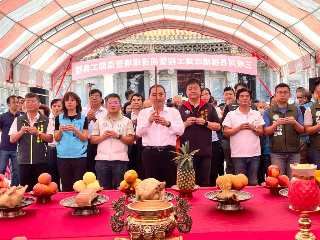 【記者高金次新北報導】為強化三峽河河防安全,新北市政府水利局辦理三峽長福橋改建工程及周邊環境營造,完工後除了可滿足三峽河防洪標準,亦完善在地觀光遊憩迴圈。今(14)日上午舉行「三峽河長福橋改建工程暨周邊環境營造」開工動土典禮,由新北市長侯友宜主持,與貴賓及施工團隊一同祈求工程能如期如質平安順利完成。