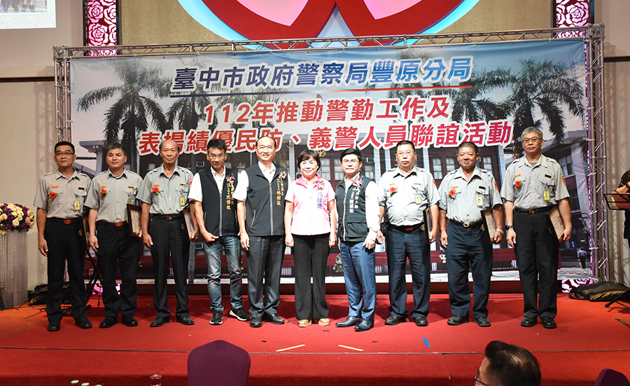 豐原警分局為表彰及感謝民防、義警人員長年熱心公益、犧牲奉獻精神,於17日辦理「112年度推動警勤工作與表揚資深及績優民防、義警人員聯誼活動」聯合餐會,警察局副局長林樹徽特別代表盧市長到場頒發資深民防、義警人員內政部部長獎13人;民防大隊陳大隊長蓀裕、義警大隊沈大隊長傳欽到場分別頒發績優人員市長獎36人;豐原民防中隊長張峰瑋、義警中隊長謝名裕則頒發表揚民防、義警分隊長獎牌。獲頒內政部部長獎者,投入民防、義警工作均達20年以上;其中義警頂街分隊隊員王登勳,其服務年資長達44年屆齡退休,24歲即投身義警工作,付出自己寶貴時間至派出所協勤,共同為維護治安工作努力不懈。分局長劉其賢表示,警察局因應治安與交通的各項挑戰提出73328的警政策略,工作重點分別為「治安7掃」、「交通3E」、「警紀3不」、「2快部隊」、「8大關懷」等,經本分局警察同仁的努力及民防、義警人員的協助,轄內全般刑案、暴力犯罪及竊盜犯罪等案件發生數,均呈現逐年下降且破獲率逐年上升趨勢,整體治安狀況平穩,治安滿意度大大的提高,藉這次表揚活動增進協勤人員情感,促進向心力及交流以提升協勤士氣外,亦希望引起社會共鳴,喚起公益熱心,傳達民力善行及關懷鄉里的精神。(圖:記者馬淑娟/文:記者王雲彬)