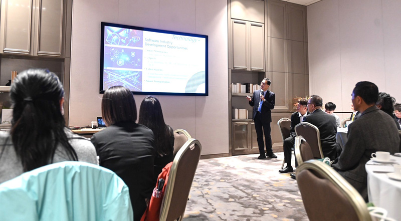 晚間招商交流餐會,包含南加玉山科技協會理事長湯京曄、副理事長劉登凱、財務長陸恩廣;Viewsonic 創辦人朱家良、 仁愛醫療集團 (AHMC)執行長邱文達、噴射推進實驗室 (JPL) 嚴正博士等科技業人士與會,駐洛杉磯台北經濟文化辦事處處長紀欽耀、經濟組劉倫正組長等人也一同出席。