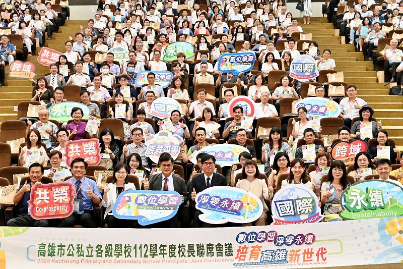 【記者陳志昌高雄報導】高雄市公私立各級學校112學年度校長聯席會議,25日於高雄大學盛大登場,計有全市約380位校長參加,以「培育高雄新世代:數位學習,淨零永續」為會議主軸,希讓校長們透過經驗交流與分享,共構高雄未來教育發展藍圖,高雄市長陳其邁特別出席嘉勉校長們辦學用心與辛勞,並感謝他們為高雄的未來和教育共同打造許多率先全國的亮眼績效,陳其邁也呼籲校長們,將環境永續理念融入學生的教育過程,以環境永續、淨零轉型作為教育核心,讓每一位學生都能夠與時俱進。。