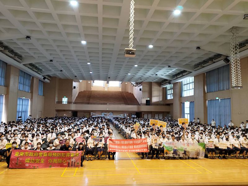 而於師長叮嚀與志工團隊熱烈分享之後,緊接著邀請第四分局員警們進行友善校園宣導,親切的員警們從法制實務面,分析網路上的種種陷阱;從新聞事例,提示同學容易忽略的交通安全;從具體事例,呼籲性平觀念以及人際之間的分寸。即如擔任司儀的國二包容方正豪同學所言:「開學典禮師長們的叮嚀勾勒出新學年校園生活藍圖,期勉我們在生活點滴中展現新高度,而於國際交流同學的分享中看到世界的多元與美好之外,世界也同時存在著苦與悲。提醒我們,平日就要有危機意識與防災常識,也讓我們利用此刻,共聚善念,為天下祈福!」如此內容豐富的開學典禮,在兩個小時內濃縮了臺南慈中對學子們的關愛與期勉。為打造新學期新氣象,全體師生也在祈禱的樂音聲中,心懷感恩的開啟了新學期的第一天。
