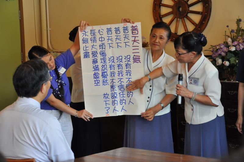 慈濟人都會唱〈普天三無〉這首歌:普天之下沒有我不愛的人,普天之下沒有我不信任的人,普天之下沒有我不原諒的人。大家會想:「叫我愛普天下的人,用說的可以;叫我原諒別人,用說的也做得到;叫我去信任別人,可能很難呢?社會這麼壞,我要怎麼去信任人?」