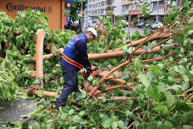 工務局表示,颱風期間民眾如遇有路燈及路樹等設施損壞,皆可通報市府應變中心或撥打1999市民專線,該局公園處獲報後即會調派人力機具到場緊急處理,啟動復原機制,以最快速度恢復市容景觀。