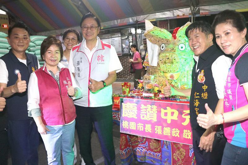 張善政表示,中元慶典是中壢區的文化盛事,也是中壢區年度最重要的活動之一,今年在中壢區公所、仁海宮及輪值里通力合作舉辦,用創新方式保留普渡文化,展現環保精神,規劃2天的精彩系列慶讚中元活動,包括水燈排遶境、創意神豬、封街晚會等。感謝輪值里的里長們熱心參與,也感謝仁海宮年年支持舉辦,市府會繼續與仁海宮及地方各里合作,讓中壢中元慶典藝術節一年比一年辦得更好。