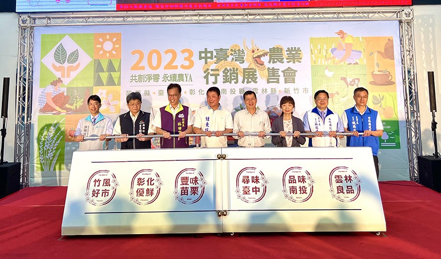 【記者鄭惠珠彰化報導】由中臺灣6縣市聯手打造的「2023中臺灣農業行銷展售會」,9月16日起一連9天於苗栗縣立體育場北側廣場盛大展出,6個縣市共150個展售攤位。6日在苗栗縣政府舉辦記者會,彰化縣副縣長林田富代表王惠美縣長與6縣市首長及代表與會,會中介紹彰化縣以「彰化優鮮」與南投縣「品味南投」、臺中市「尋味臺中」、苗栗縣「風味苗栗」、雲林縣「雲林良品」、新竹市「竹風好市」,網羅中部縣市新鮮當季農產品與加工品,結合優質農會、產銷班、合作社、青農與小農,共同行銷中部縣市當季新鮮農產品與加工品,展現中部縣市農業好味道。