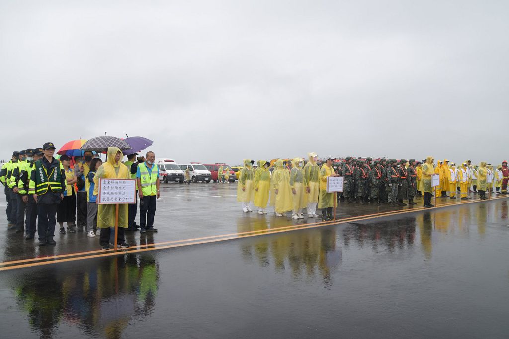 交通部民用航空局文志文副局長說:緊急事情的發生,各單位都有成立緊急災難救助小組,做好事先的規劃救難措施,航空站希望藉由每年的演習,進而達到減災預防、災前整備、有效救災、迅速復原、減少人員損傷之目標,正式演習的今天雖然下雨,下雨狀況是更貼切災害發生,也借由各種天候及不佳的狀況更能突顯出救災的訓練及加強落實。