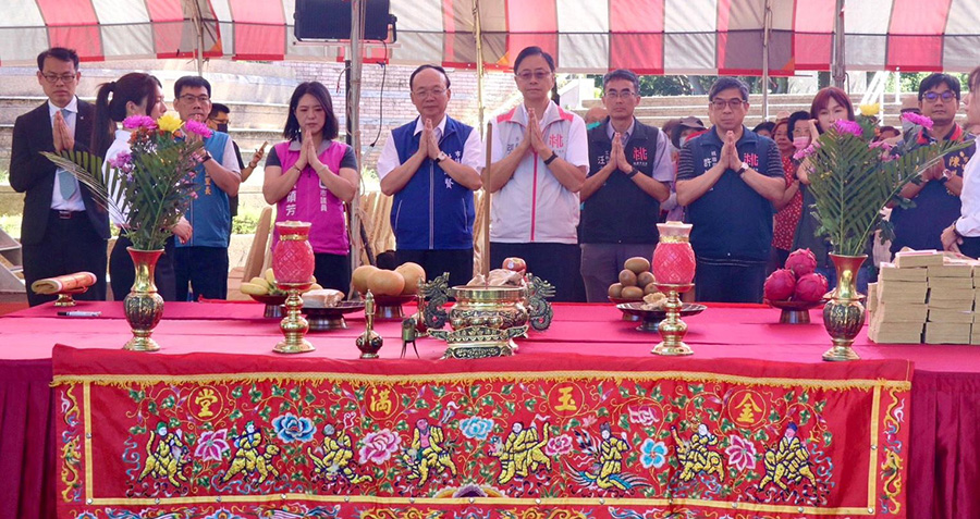 【記者鍾陽正桃園報導】桃園市政府日前在桃園區陽明公園舉行「陽明公園兒童遊樂場、附屬設施及整體景觀環境改善工程」開工動土典禮,由市長張善政與工務局長汪在宙、市議員林政賢、張碩芳、陳美梅、黃婉如、黃瓊慧、黃家齊、桃園區長許敏松等人進行祭祀及開工動土儀式,計明年9月完工,打造親子宜居城市。