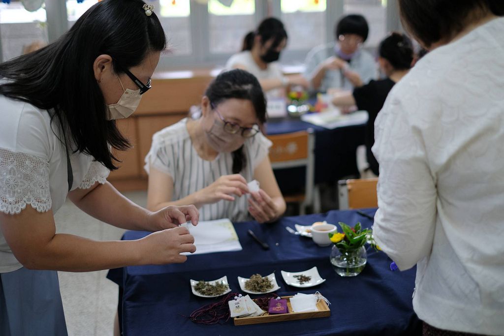 而為了迎接家長的到來,每位導師在親師日前天晚上無不用盡巧思,呈現教室人文布置,展示孩子用心製作的作品。學校老師們精心準備「『荷』你『艾』在一起」活動,係以薄荷、艾草、丁香,讓家長自行製作福慧、安康香囊,寓意象徵福慧增長、平安健康,意義深遠!