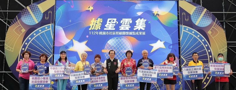 【記者鍾陽正桃園報導】桃園市政府於日前在市立綜合體育館盛大舉辦112年桃園市社區照顧關懷據點成果展「據」星雲集,共有60處據點、2000名長者及志工一同共襄盛舉,充分展現據點獨有特色。市長張善政亦與市議員牛煦庭、陳美梅、舒翠玲、錢龍、社會局長陳寶民、客家局長林昭賢、青年局副局長涂淳惠、桃園區長許敏松、平鎮區長呂緣等人出席,與長者共享歡樂成果。