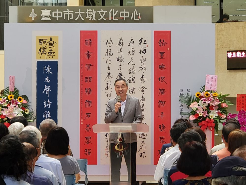 開幕式,包含副市長黃國榮、立法委員黃國書、立法委員楊瓊瓔、民政顧問黃俊偉、參事林輝堂、參議賴森林、副議長顏莉敏團隊秘書李昭明、文化局局長陳佳君、新聞局副局長廖烱志、前文建會主委洪慶峰、前立法委員郭林勇、中國書法學會榮譽理事長連勝彥、台中市文藝作家協會榮譽理事長林懋盛、台中市書法學會理事長張家馨、名詩人蕭蕭、書法家陳維德、雕塑家陳松,以及眾多藝文界好友皆到場共襄盛舉,歡迎民眾把握展期欣賞精采作品。