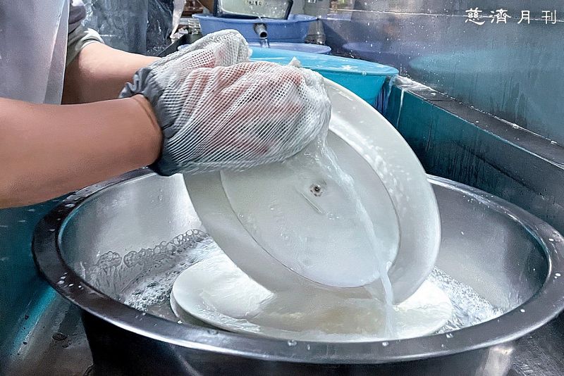剛開始拇指處也沒有車上菜瓜布,但發現盤子的邊緣無法完全洗乾淨,於是再補強;另外,手掌處的布料容易磨損,所以又改變布料材質。林林總總,從發想到成就,是集師父們使用後的回饋與建議,一次又一次修改,如今公盤專用的菜瓜布一目了然,也屢屢有「好特殊」、「好用」、「好有創意」的讚歎聲。
