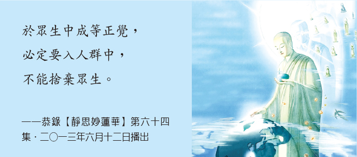 大家有志一同行菩薩道,從過去、現在到未來,生命不斷輪迴,雖然我們無法抵抗生命的法則,有的弟子早已先我一步而去,但我在想,若我將來隨之而去,這前前後後,無論是先行還是後到,大家所結下的是生生世世的因緣。