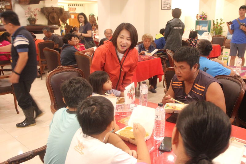 周春米傍晚再趕到恆春鎮關心族人,安慰直說「小犬變惡犬,大家辛苦了」。她一一與族人握手,和vuvu打氣,還跟長樂國小學童玩起比愛心,叮囑小朋友「這裡不能向活動中心跑來跑去,要注意安全喔」,也麻煩在地青年要多多照顧長輩。