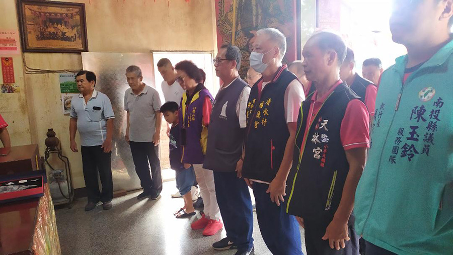 2.朝天宮天上聖母到位清水村福德宮由主委率領各理監事迎接參拜。(記者陳良安攝)