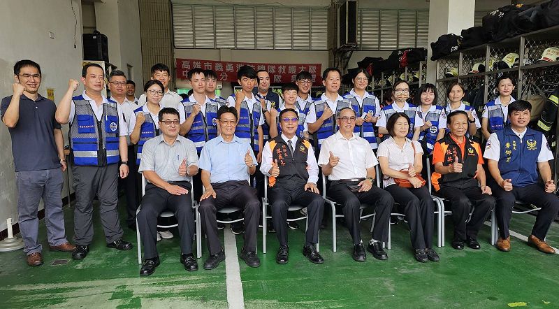 【記者吳峙嵩高雄報導】高雄市義勇消防總隊救護大隊中華救護義消分隊7日上午於消防局中華分隊,舉行祭天暨授旗成立典禮,藉以強化鼓山區的救護量能。