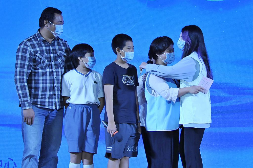 全家人陪伴鍾佳穎來見恩人,鍾佳穎的母親在她14歲發病時,辭掉工作專職照護她之外,還有年幼的弟弟及重病的父親要照顧,母親在長期的勞心勞力下,需長期洗腎,如今已洗腎3年,正等待換腎,為了見女兒的恩人,母親即使帶著腹膜透析,也要到現場一家人一起親自道感謝。