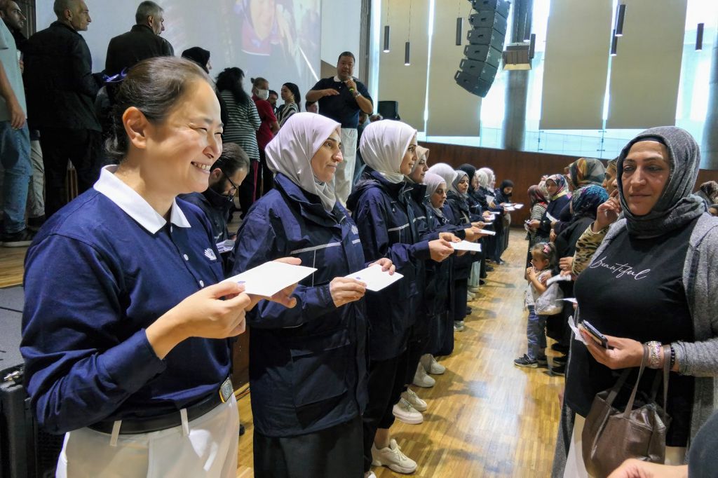 土耳其慈濟志工熱誠地將人們安排進入會場,並在會場內安撫民眾的情緒,將證嚴法師「日存五毛錢」的精神理念傳達給大家:今日能夠幫助這麼多人都是由於眾人的愛點滴累積而成。民眾看到來自異鄉的志工們感到好奇與親切,不停地與志工合影,也紛紛表達了感謝之意。
