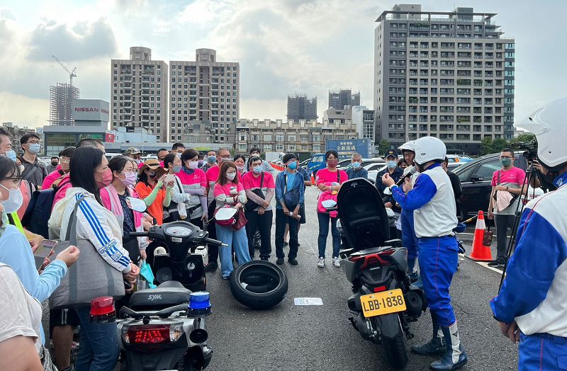 交通局長葉昭甫指出,台中市道安團隊透過結合各大專院校,針對年輕族群辦理交通安全設攤宣導、大型車視野死角與內輪差實地體驗及新鮮人交安講座等,深入校園教授認識機車安全騎乘技巧、檢查機車安全設備,現場示範騎乘機車注意事項。