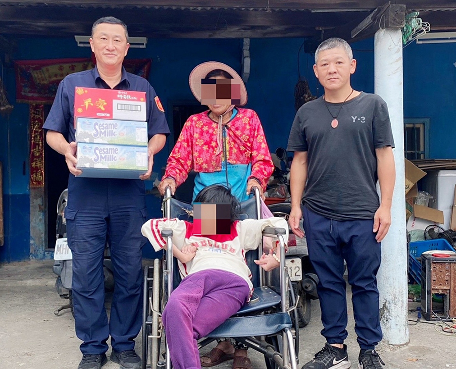 口湖聯合所黃詩傑所長與媽祖慈善會志工潘建昇日前走訪轄內,針對生活亟需社會援助之獨居老人及弱勢家庭發送民生物資,同時轉達「有需要警察幫忙的地方,可以透過警勤區員警或直接打電話與警所聯絡,警方定會盡力來協助」,充分展現警察鐵漢柔情的一面,也讓孤老感到很窩心。