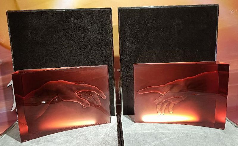 國裕執行董事欒慎寰也說,這次參展的摩瑟精品共計25件,其中相當珍貴的,要屬湯瑪士.雷瑟的佳作「創世亞當」,全球限量僅8件,只有1件赴台參展,畫面主題為梵諦岡西斯汀禮拜堂穹頂米開朗基羅的創世紀壁畫,其中最有名的「創世亞當」,上帝與亞當的手指接觸,以水晶雕刻完美複製。
