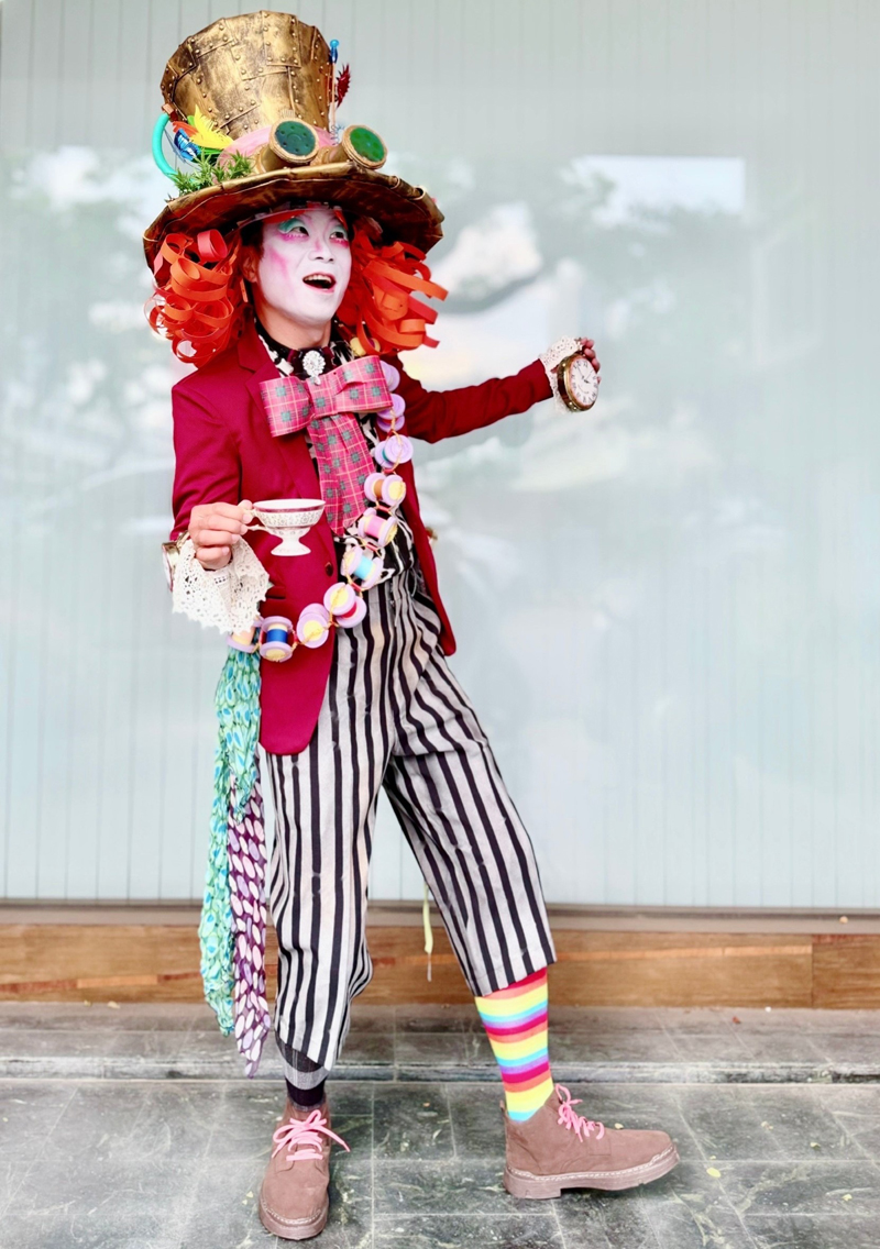 新上國小校長王彥喦表示,他也參加這場創作大賽,並動員全家人一起合作,利用家中的日常用品和舊衣服,打扮成很炫的瘋狂帽客,挑戰不上街購買,臉書貼文立刻超過500個讚。