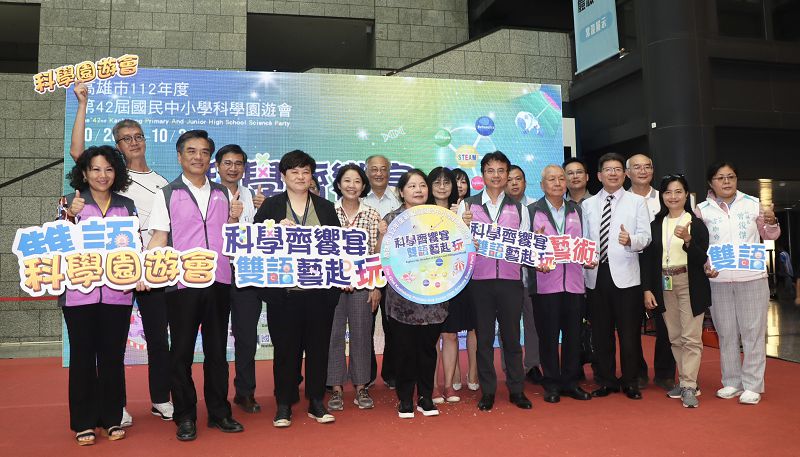 高雄市第42屆科學園遊會20日上午在科工館盛大開幕,由五福國中學生與黃之新老師共譜Black Pink & Black Jack揭開序幕,包括教育局專門委員劉靜文、科工館館長李秀鳳與多位貴賓一同碰觸電視牆中的圖標完成啟動儀式。