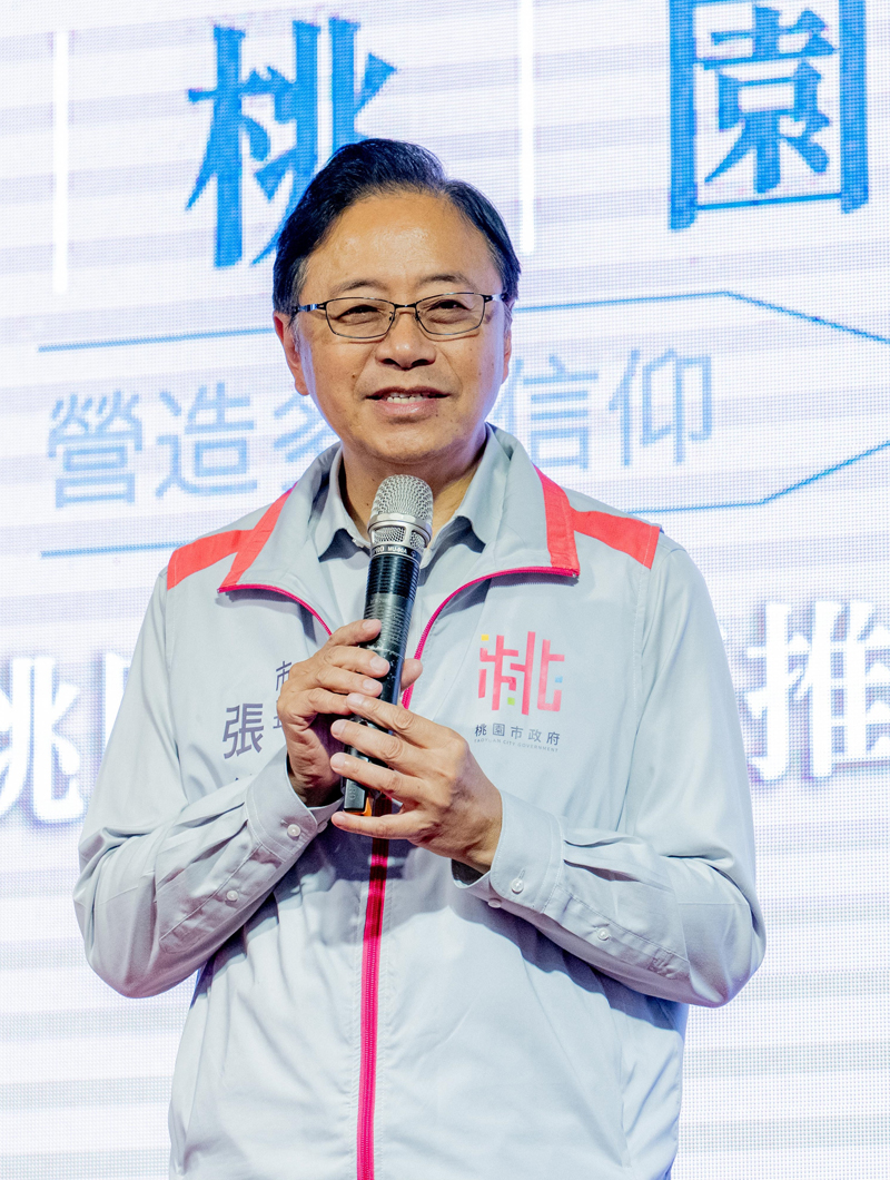 桃園市長張善政致詞感謝所有宗教團體的付出,並期盼藉由頒獎表揚,傳達所有市民的感激。