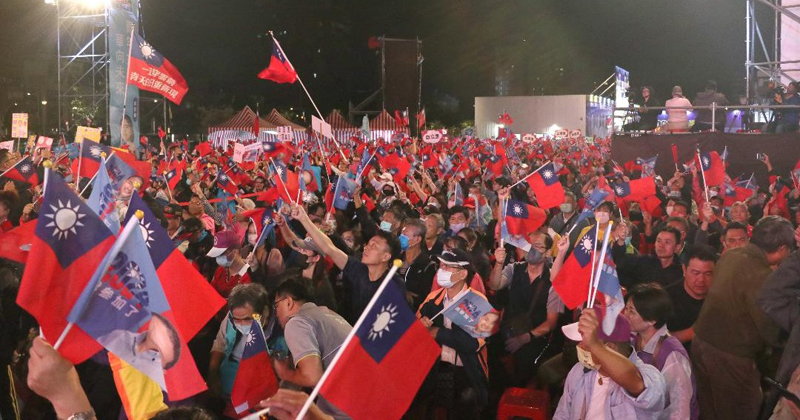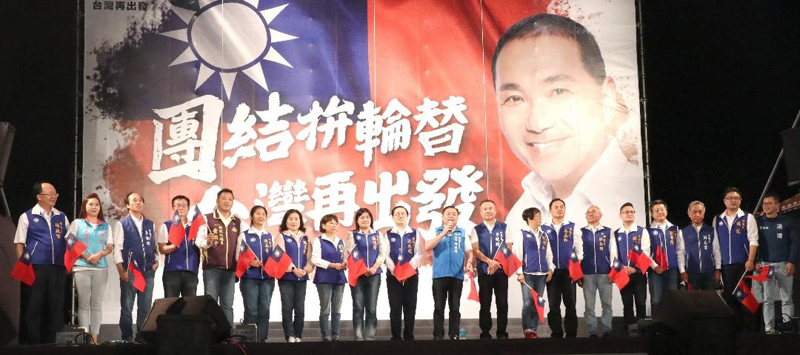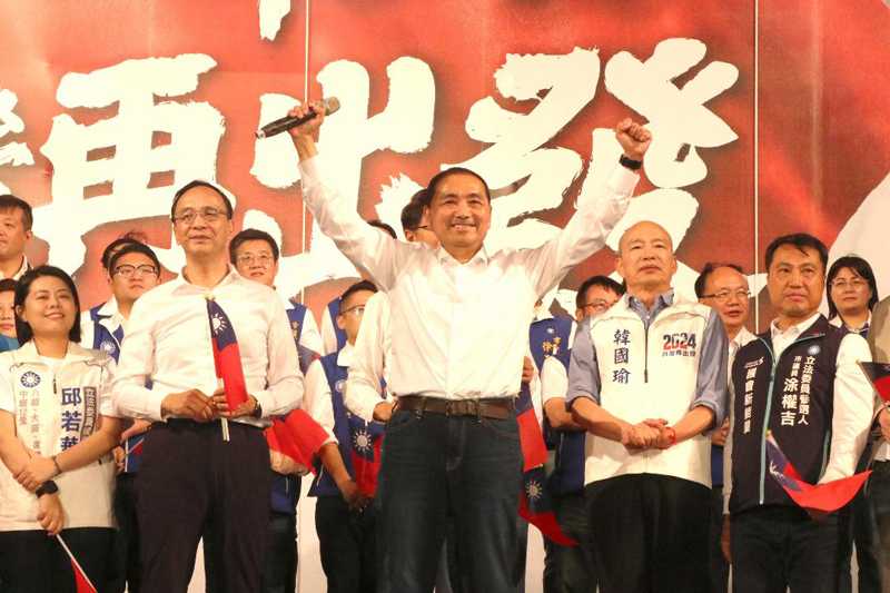 【記者鍾陽正桃園報導】國民黨總統參選人侯友宜於21日晚間在桃園中壢區中豐路、中美路二段交叉路口舉辦桃園市競選總部成立大會,吸引超過2萬名支持者湧入會場,不斷揮動國旗表達對侯友宜的支持。國民黨主席朱立倫、前高雄市長韓國瑜、桃園市長張善政、桃園市議會議長邱奕勝、藍營民代與國民黨提名的六位立法委員參選人等全都前來力挺,展現出大團結氣勢。現場國旗海飄揚,凍蒜聲浪不斷,相當震撼。