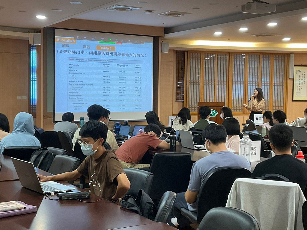 首先,參與者了解到為什麼早期學習實證醫學是至關重要的。講師們強調了科學證據在醫學實踐中的關鍵作用,並解釋為什麼臨床專業人士應該不斷更新他們的知識,以跟上醫學領域的最新發展。接著,工作坊聚焦在如何定義和解決臨床問題上,並介紹了PICO模型,以確保他們的臨床問題清晰明確,有助於進一步的研究和分析。文獻搜尋是實證醫學的一個重要步驟,參與者學習如何有效地在醫學文獻資料庫中查找相關文獻,並整理這些資訊以支援他們的臨床實踐,此外,工作坊還針對隨機對照試驗(RCT)評讀方法的探討,以及風險偏差(RoB2.0)的介紹和實際應用。這些內容使參與者能夠更好地評估和解釋醫學研究的品質,進一步提升臨床決策的信心和準確性。