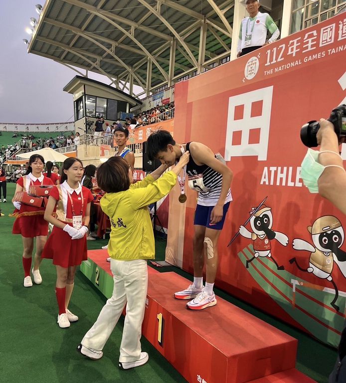【記者于欽智高雄報導】高雄市選手在全運會中奪牌連連,成績亮眼,議長康裕成專程前往賽場為選手們加油打氣,還榮幸代表大會頒獎給勇奪男子5000公尺冠軍、年僅16歲的高雄市子弟兵簡子傑,直誇表現「一級棒」!