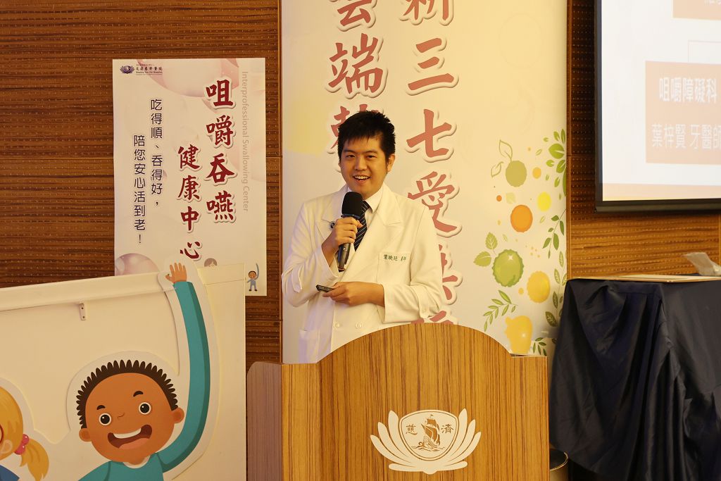 啟動儀式後,咀嚼吞嚥中心同時舉辦學術研討會,由臺大醫院牙科部口腔顎面外科陳信銘副教授、花蓮慈院咀嚼障礙科主任暨牙科部醫師葉梓賢、中醫部中醫教育中心副主任龔彥綸、吞嚥障礙科主任葉映廷,分別分享口腔癌手術與放射治療後咬合咀嚼口腔重建、口腔機能低下症、吞嚥障礙中西醫合療、呼吸肌訓練在吞嚥障礙的運用等專題演講,互相交流以提升咀嚼吞嚥障礙者的生活品質。