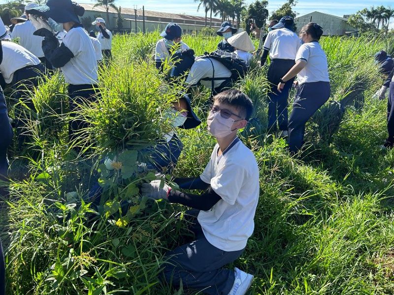 由於大家都是「新手」上路,人人沒有經驗,將近一百五十人同步綁香茅,狀態、速度都一樣,原本看到滿片野草與香茅幾乎等高的藥草園,隨著「人潮」前進,綁好香茅時,雜草也在大家齊步同心,往前走也倒成一片,留下壯觀的香茅佇立眼前!