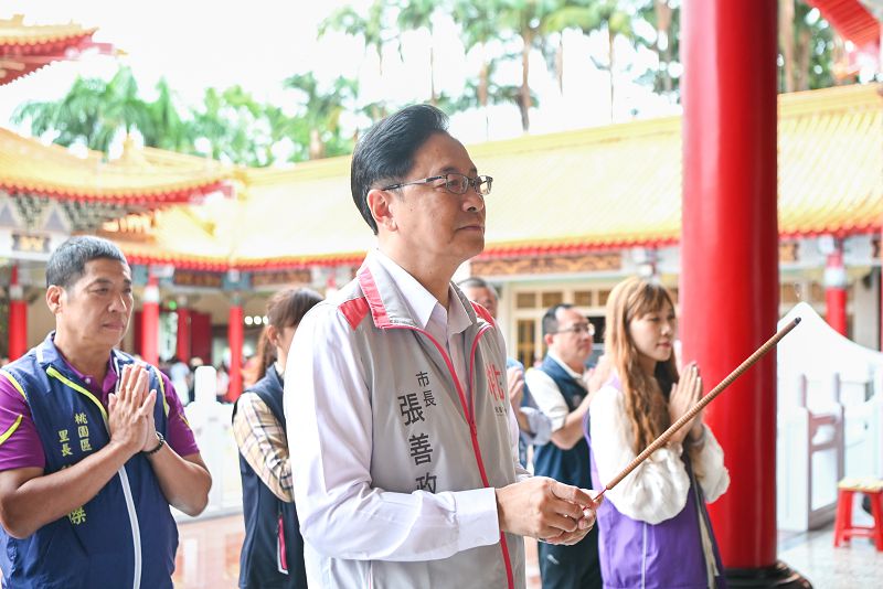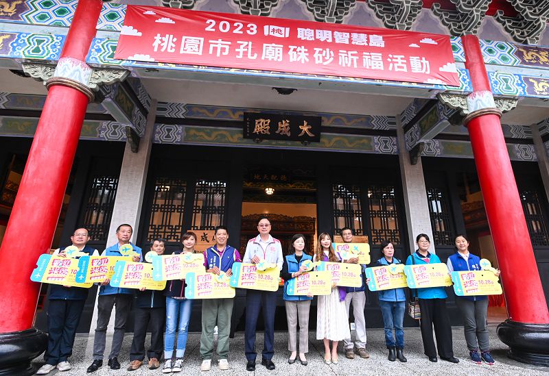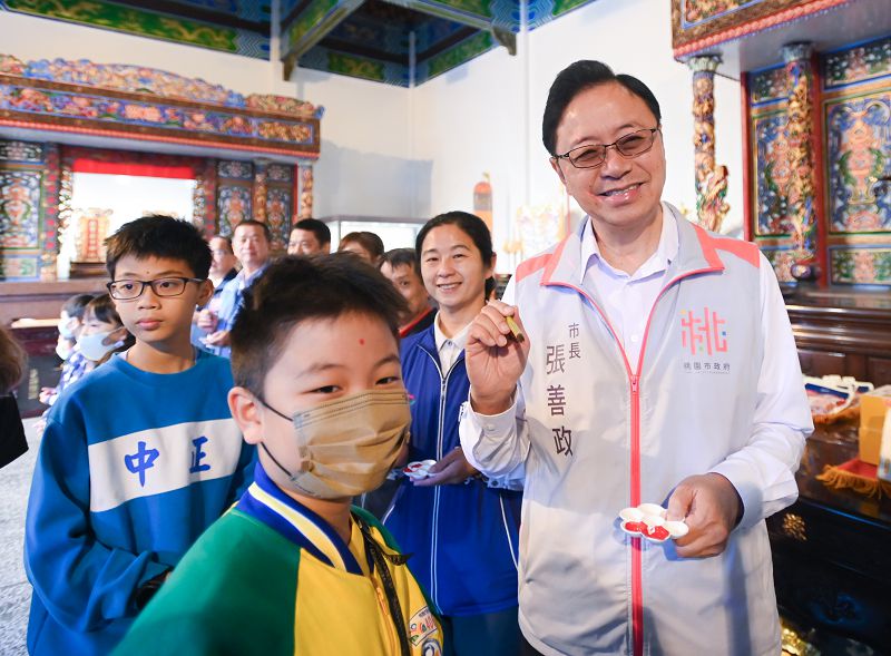 【記者徐玉英桃園報導】桃園市長張善政28日上午在市議員陳美梅、市府民政局副局長賴嘉美、桃園區副區長邱創正等人陪同下,前往桃園市孔廟出席「桃園市孔廟硃砂祈福—歡迎光臨!聰明智慧島」。