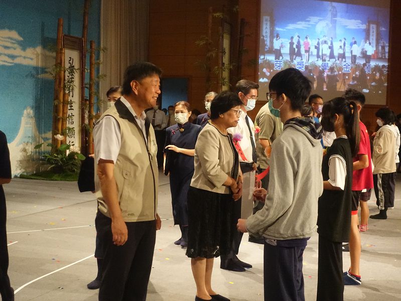 台南市教育局長鄭新輝鼓勵學子都要有樂觀的心,學習慈濟人樂善好施、「施比受更有福」的精神,更要秉持感恩的心幫助可以幫助的人。鄭新輝表示,小時候家境不好,環境不容許我一帆風順,面對困境時轉彎往前行「我也是跟各位一樣一步一腳印走到現在」。