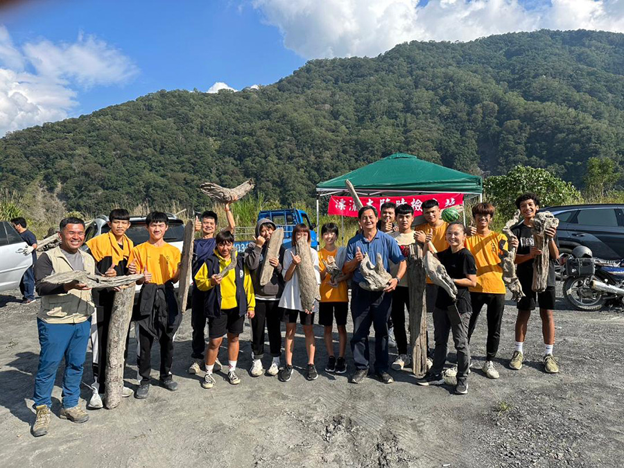 林業及自然保育署南投分署分署長李政賢在公告開放自由撿拾當天下午特別前來霧社水庫開放自由撿拾區域,關心仁愛鄉鄉親撿拾漂流木情形,恰巧遇到仁愛高農老師帶領森林科學生前來,除了一起跟同學尋寶,也現場指導學生簡易的樹種辨識技巧,並開心與同學合影,仁愛高農老師及學生也感謝林業及自然保育署南投分署工作人員現場解說漂流木相關知識,讓學生收穫滿滿。
