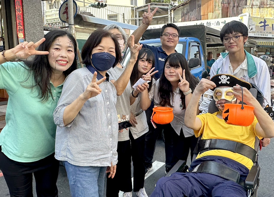 【記者雷琇雯雲林報導】為迎接西洋鬼節到來,義峰高中的同學們一早就來到創世基金會斗六院「裝神弄鬼」,但學子們不是要來討糖搗蛋,而是要來做公益陪伴植物人,大家一起外出踩街,度過難忘又有意義的萬聖節。