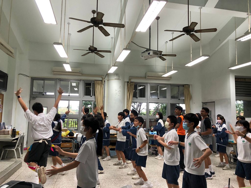 國一包容班張沐恩同學分享,被推選為接待小天使讓他有點焦慮,因為這是他第一次和外國的朋友交流,很擔心遇到英國同學會講不出來話,但他鼓勵自己要更加強英文的能力,也很開心能向英國同學介紹台灣的原住民文化,全班同學和導師也一起排練了原住民舞蹈和英國的同學一起分享。