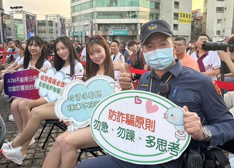 【記者鍾陽正桃園報導】桃園警分局為加強落實政府反詐騙宣導效能,[桃園打詐隊]除自9月起至轄內各學校馬不停蹄持續至校園辦理識詐、婦幼及交通宣導,加深學子相關法律知識外,日前亦結合市府文化局前往桃園藝文特區,參與法務部矯正機關及市府文化局共同舉辦的「破繭而出、藝心向前」的展示會,在現場展出超過百件以上的藝文作品供民眾來參觀。另配合體育局在市府前廣場辦理的「2023中華職棒台灣大賽直播活動」,邀請熱力四射的樂天女孩一同參與反詐騙宣導外,並於現場邀請民眾一同反詐騙。