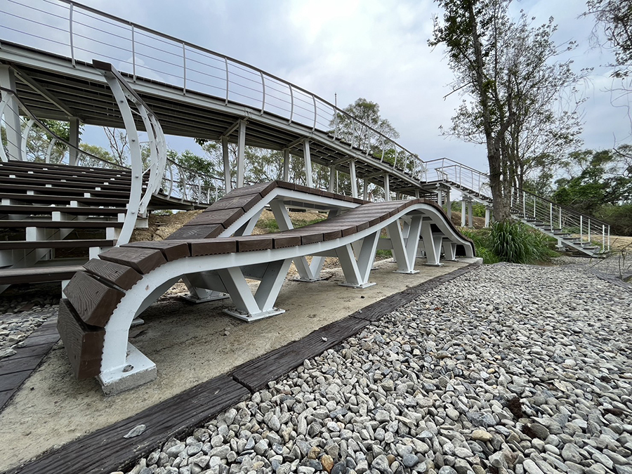 最值得一提的是在地民眾萬眾期盼,能將原來損壞封閉荒煙漫草的北側步道復原,在本次工程也順利完成。另外北側步道制高點特別延伸設置抬升式的景觀步道,讓遊客可以在制高點的山頂還能更上一層樓,俯瞰緊鄰的關廟休息區,黃昏時分還可以看夕陽美景,觀旅局將此觀賞絕妙美景的步道稱為「觀妙步道」,觀妙步道鋼構造型、周邊環境的氛圍以及造型休憩座椅相信也成為拍照的絕佳景點。目前關廟森林公園均已落成啟用,提供遊客舒適的旅遊環境。