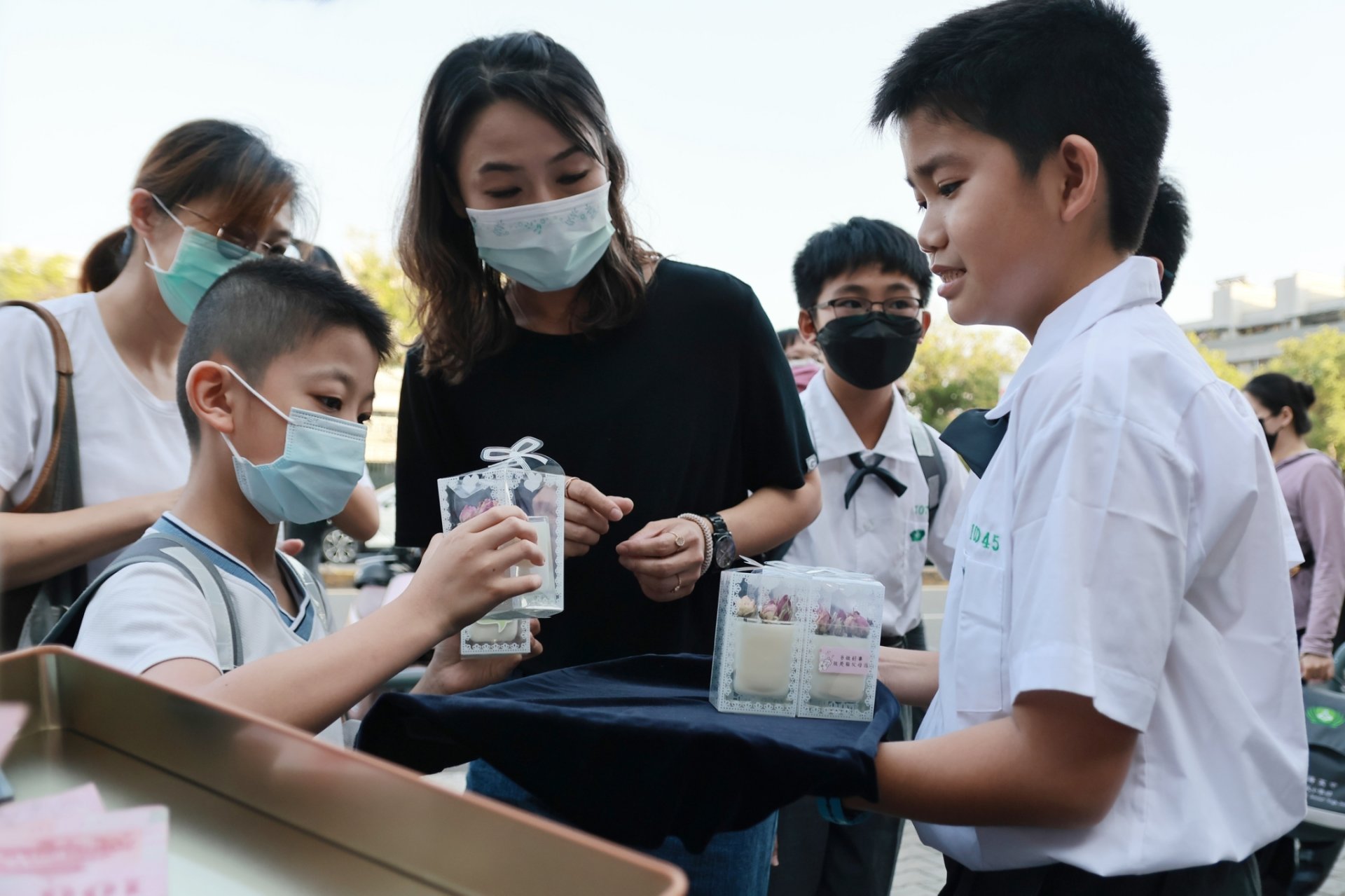 募心募愛活動在學生們演唱「你的愛陪我發光」的歌聲中正式展開,限量120個香氛蠟燭於短短5分鐘內全數售完,除了感恩在場各位爸爸媽媽、阿公阿嬤們熱情的響應外,也感恩大家護持他們的善心善行,讓學生們更加堅信歌詞所唱「這世界有我們一定會變更好!」