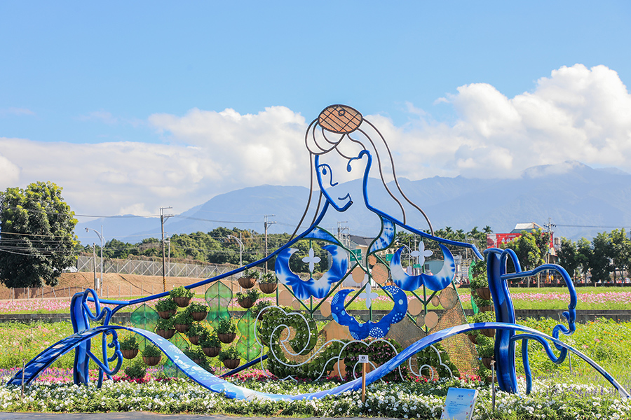 觀旅局長陳美秀表示,此屆花毯節挑戰非常艱鉅,從無到有耗時3個多月,期間歷經3次颱風及數次豪雨,全靠專業工程人員及花農組成的團隊克服,挑戰史上最大的主花毯。此外,今年還規劃4座創意主題展區,包含入口迎賓的彩虹七線、融入地方編織及藍染特色的工藝女神、以建造白冷圳的工程師磯田謙雄為形象設計的生態勇者,以及代表智慧農業的大地巨人,展區故事主軸皆彰顯新社在地發展歷程與觀光優勢。