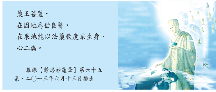 看不見的病毒讓人畏懼,患病要靠醫療救治,但是最重要的還是要在日常生活中做好防範,保障人人的健康與平安。當年慈濟人在各社區推動「同心共濟弭災疫」,帶動大眾虔誠齋戒,共聚善業,消弭疾疫災禍。其實並不是疾疫過去以後就不用虔誠、不再齋戒,尤其現在全球暖化,導致愈來愈嚴重的氣候災難,素食是有效降低溫室氣體的方法,為挽救環境,人人非素不可。