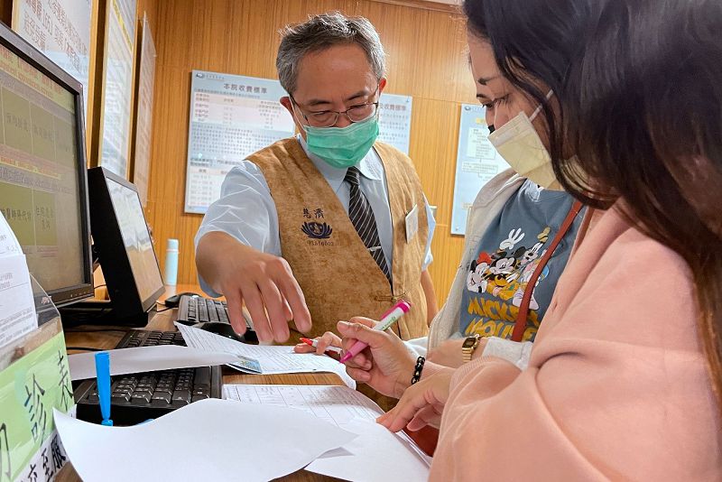 雙十連假的第一天早晨,大林慈濟醫院依舊熙來攘往,住院服務中心櫃檯外的等候區,有為數不少的人們,住院的、出院的、申請各式證明的……