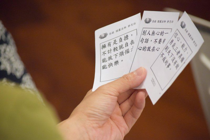 《靜思語》是上人體行的智慧結晶,字字珠璣,是應世、應時、應機的妙法。上人期勉在座教師:「教師教導《靜思語》要能『教思』,啟發學生,帶動心靈的『思考』。」
