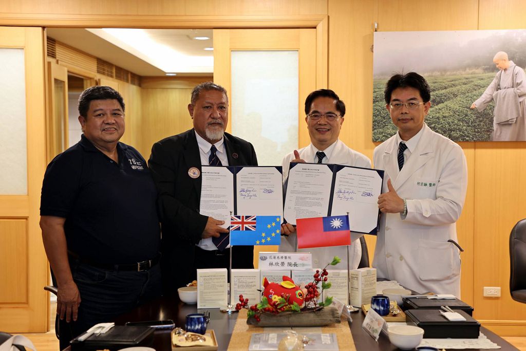 吐瓦魯共和國衛生部部長Isaia Taape於十一月十日中午抵花蓮慈濟醫院,與林欣榮院長、許文林副院長、何宗融副院長及多位中醫師座談交流,並由林欣榮院長、何宗融副院長和Isaia Taape部長代表雙方簽屬合作備忘錄。Isaia Taape部長表示,臺灣醫療發展聞名國際,更聽聞花蓮慈院以中西醫合療著名,因此慕名參訪,期望藉由合作,學習中西醫合作模式的精華並帶回吐魯瓦,提供病人更好的醫療服務。