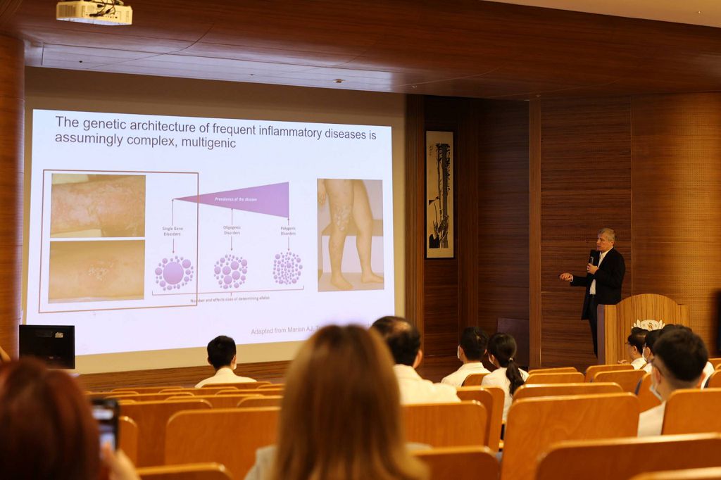 這份好因緣持續延續,Bachelez教授10日特別於花蓮慈院全院學術演講中以「從稀有到常見:單一基因模式如何開啟乾癬疾病的新觀點」為題,分享他在乾癬精準治療的展望與最新研究,而他目前更領導跨國團隊進行膿皰型乾癬的生物製劑進行人體試驗。Bachelez教授說,目前仍持續與張中興教授,以及英美日等多國專家一起合作,期望可以讓難治的膿皰型乾癬未來能有更精準更有效的治療。